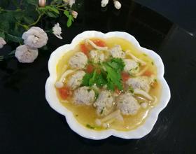 肉丸下锅大火煮4~5分钟放蔬菜,再煮1~2分钟左右。