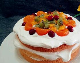 - 12. 铺上喜欢的水果,在上面再盖一片蛋糕,再抹奶油加水果,依次做完。