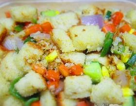最后放入吐司粒,加上适量的盐翻炒均匀即可。