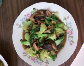 把香菇先放祸炒,大概两分钟放油菜,油菜如果觉得太大可以拿手折断下