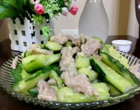 然后把炒好的肉片倒入黄瓜内继续翻炒几下,加入适量味精。