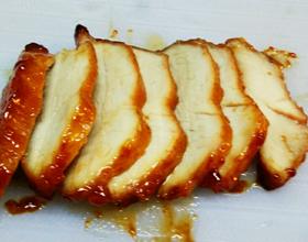 15分钟后,取出肉,把肉的两面抹上一层蜂蜜,再烤10分钟,好了后,等肉冷了,就可以切咯
