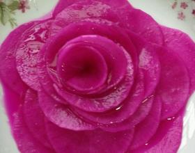 火龙果切块,加点水榨汁,把滤干水的萝卜放入火龙果汁中,加入醋及白糖,喜欢酸的可以放多点,泡3小时以上