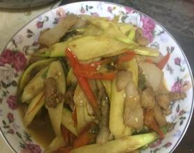 下茭白翻炒,茭白是海绵体,需要放点水一起炒