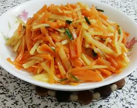 胡萝卜本身有甜味,放盐不能够太多。土豆切好后要尽快炒,防止变色。