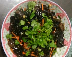 把坢好的调料倒入木耳里拌匀在放入香菜即可食用