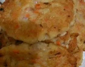 土豆煮熟去皮压成土豆泥,胡萝卜,洋葱切成丁,鸡肉剁成蓉然后加入盐一点点生抽玉米淀粉搞拌均匀,再加入土豆泥胡萝卜和洋葱丁和成面团,