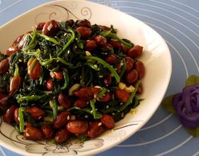菠菜用热水焯熟,可以去掉草酸。花生米炒到红皮裂开,可以更好的吃出花生米的香味。