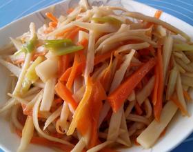 藕去皮洗净切丝,胡萝卜切丝