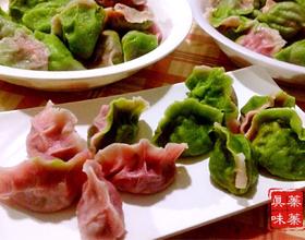 饺子皮和面时可以加点盐,也可加个鸡蛋,这样皮有筋道,蔬菜、水果打泥和面,不是榨汁,如果只是榨汁颜色浅,还丢失营养