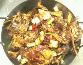 炒锅制热加适量油,油温好后倒入蟹煎至发黄红色时加入姜干尖椒花椒香辣酱大葱煸香,最后调好味加啤酒或适量水份烧会儿,汁不能太干,即可起锅装入备好鱼线或油面的容器,撒上香菜食用。仅供参考。