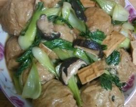 锅烧热放少许油,把面筋泡到入锅里加水,煮10分钟左右,在放几根青菜就ok了