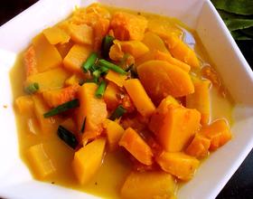 1、家烧南瓜的选料很重要,要选择比较老比较粉的南瓜。2、南瓜切下去感觉很吃力,南瓜会吸住刀面的比较甜。3、南瓜最好选择皮薄的,烧的时候能够保留住南瓜皮,因为皮的营养是很好的。4、南瓜选择好的自然就有南瓜自己的鲜甜味,所以不需要味精,用味精反而盖住了它本身的鲜味。当然喜欢放味精的友友们可以适当的加点。
