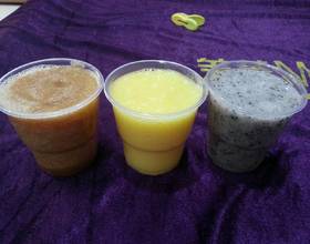 先将苹果,橙子,火龙果去掉皮,切成小块。