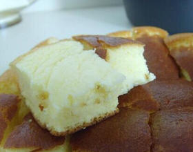 锅内涂了油,一倒就出来啦,蛋糕底部的颜色比较深,松软可口的蛋糕,大功告成啦!掌声响起来。