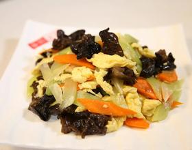 - 7. 锅中下油10克,大火烧热,下葱姜蒜爆香。放入青笋、胡萝卜、鸡蛋在锅中翻炒。