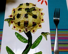 1、用番茄酱点缀时,要将向日葵🌻周边的花冠部分一同点缀一下,看起来会更好看2、摊蛋皮时,鸡蛋液中可加入少许水,这样摊出的蛋皮更蓬松3、焯青菜时,开水中加入少许盐和几滴油,会使青菜色泽更好看4、青菜焯好后,一定要马上用凉水拔凉,否则青菜很容易氧化变色