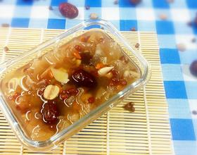 5分钟后,关火,锅下汽,打开盖子,加入枸杞子,不用盖盖子,煮3分钟,关火,银耳红豆糖水完成了!