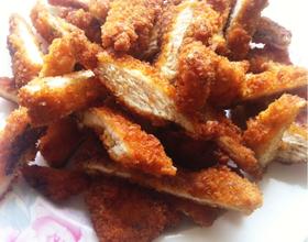 - 11. 愉快的享受又香又脆的炸鸡排吧!如果喜欢蘸番茄酱吃就盛一小碟:)