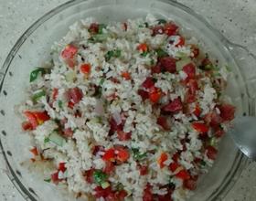 将洋葱,胡萝卜,黄瓜,香肠(先煮30分钟)切丁,香菜,葱切碎备用