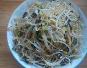 看豆芽都快熟时放点白醋,盐,葱青翻炒几下就可以了。