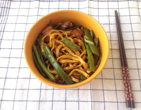 盖上锅盖焖3分钟,将面条翻面继续小火焖2分钟。差不多收干汤汁加入适量生抽和盐调味,翻炒均匀即可