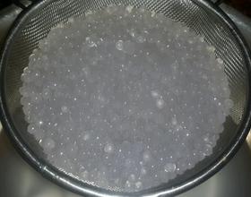 煮个几分钟光火,盖盖子,放凉,然后拿去水龙头冲,把原来的水倒掉,再重新烧一锅,水开了继续把西米露倒进去,再煮几分钟,看西米露中间只剩一点白光火,盖盖子再闷