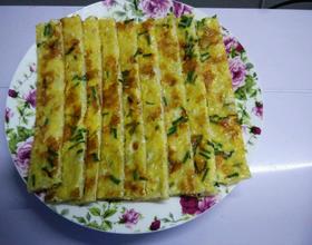 加入葱花拌均,平底锅加热,倒进去煎到两面金黄色