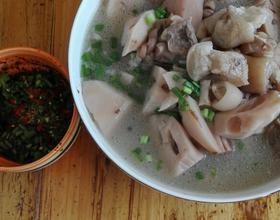猪脚焯水后在加清水煮七成熟!藕倒入!煮一个小时后即可