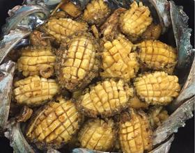 - 8. 打薄芡,包花生油上瓦煲装好,排鲍鱼在上面,把鲍鱼壳围在边上