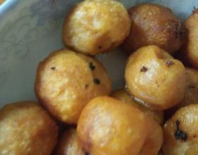 锅中加油加热,放红薯团(中小火,不可以太大,因为红薯已经是熟的了)注意不要烧了