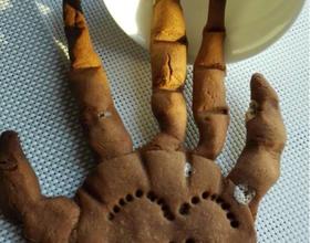 骷髅手是玩儿的没拍步骤,搓几个长条用牙签造型就可以了。另外橄榄油换黄油更酥脆一些。