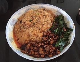 同时将米饭放入捣烂一起翻炒,直至饭菜均匀混合,起锅前按口味放些生抽,熟芝麻。装盘。