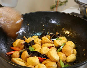 - 8. 放入豆腐块,木耳、青椒、红椒中火炖3分钟。