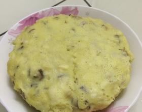 马蹄,香菇,三层肉切丁,加入打至起泡的鸡蛋内,倒入面粉搅拌均匀。