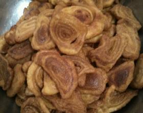 醒好后将两个面团擀成薄薄的面片,把白色的放在下面,把红糖面团的铺在白色面团上,并卷起来,要卷的紧一点,防止炸开会散了