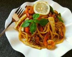 意大利面(青酱白兰地海鲜通心面)的做法