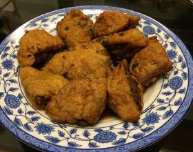 - 7. 把拌好的馅料包入事先准备好的油豆腐中