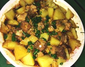 排骨切段泡水15分钟去血水,土豆切块,装盘待用
