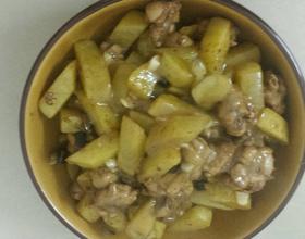 土豆要分开来炒,如不分开来炒鸡根熟了而土豆还没熟,土豆熟了而鸡肉就老了,切记!这道菜下饭最好,虽没有汁,但一口一个香啊………