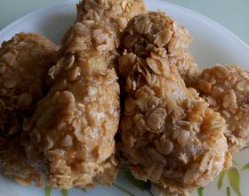 在鸡腿上划两刀,可以在腌制时更加入味,鸡腿炸过后可以用厨房纸把多余的油吸掉,因为我家里没有厨房纸,所以用就漏勺沥油,然后就装盘了。