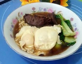 放入碗中,把牛肉片加入,一碗热腾腾的汤面做好了