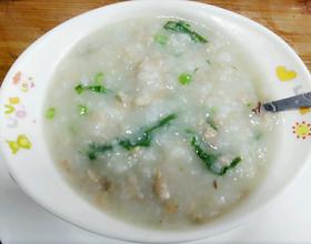 搅拌均匀后加入青菜末,试下味道,淡的话可以加点盐巴