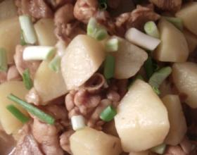 加土豆,炒匀,加少量的水,盖盖煮十分钟左右