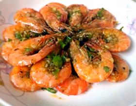 把虾中火翻炒片刻后加入蒜蓉姜末青椒粒…继续翻炒