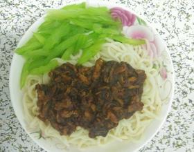 起锅放水煮面条。开锅点三次凉水。面条就熟啦。捞出。放凉水盆里。再控干水。就可以用炸酱拌面啦~放点黄瓜丝或其他绿色蔬菜就更美味啦~