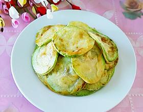 西葫芦片尽量切薄一点,很容易熟,不要煎太久,也可以在面糊里面加入五香粉,口味重的蘸着辣椒酱,番茄酱都可以。
