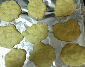两者搅拌均匀,在加入打撒的蛋黄。做成饼干形状。