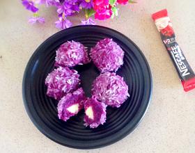 - 6. 包好的紫薯放入碗里裹上糯米