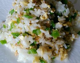 放入剩米饭,鸡蛋,少量盐。炒制米粒干爽即可,